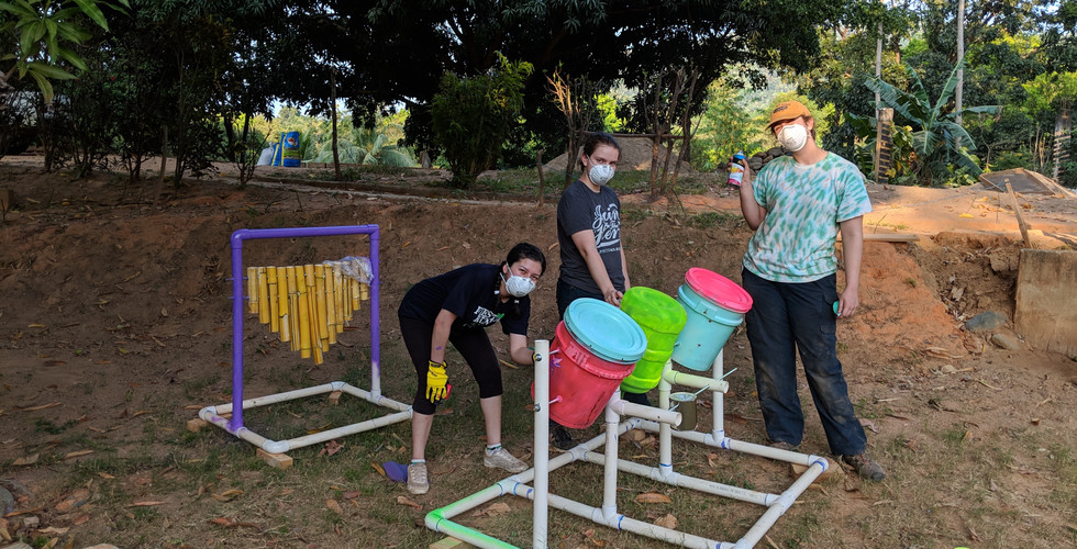 As another day comes to a close, a few things have remained the same, God is still forever present and every meal is amazing. The construction of the tunnel, drum set, and xylophones have all been completed. The team worked their tails off today and it paid off! We were able to get one coat of paint on the back side of the tunnel, where the rock climbing wall will be, just before dinner.